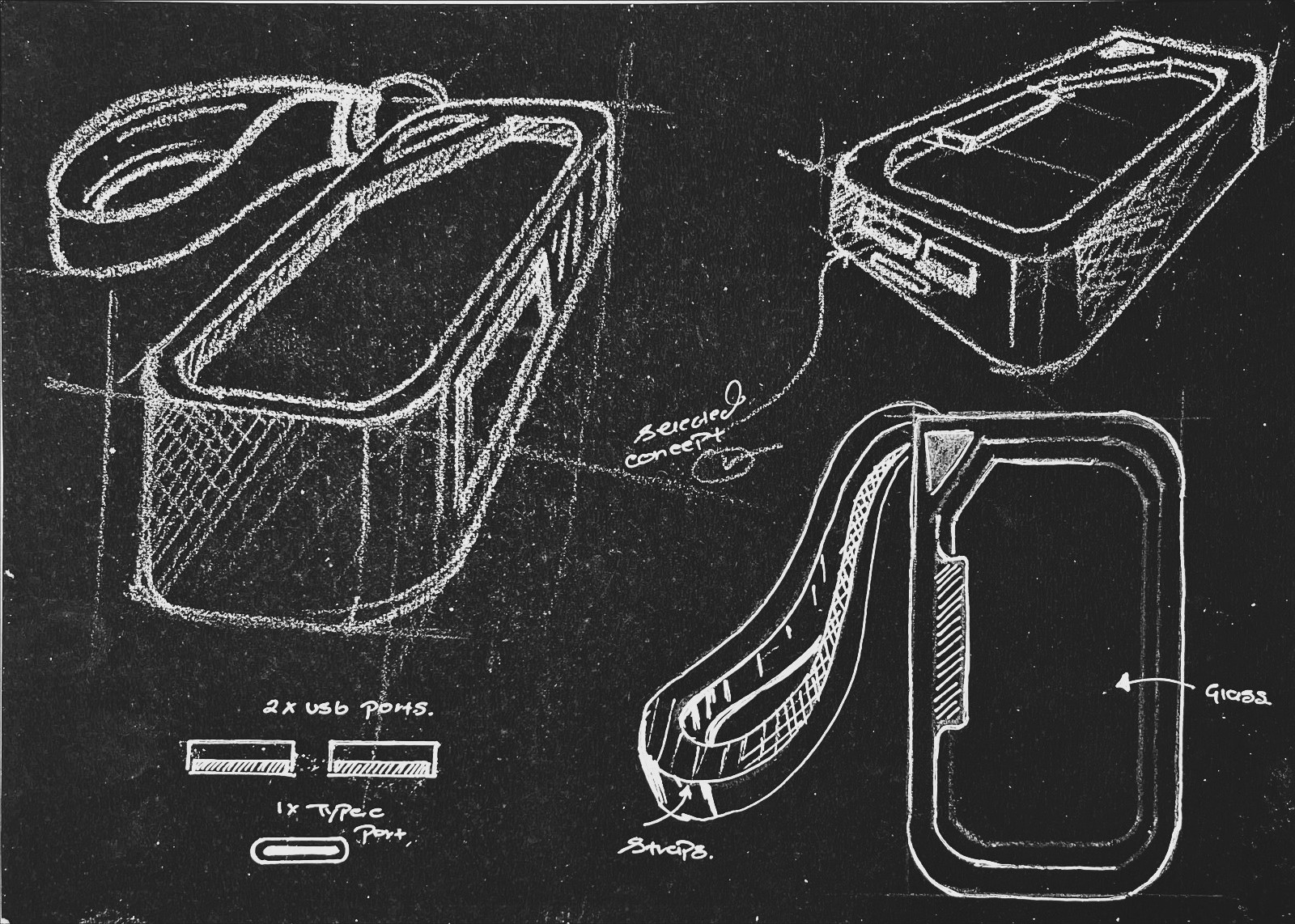 Transformative Form Factor: The primary goal was to integrate a stand without adding significant bulk or separate parts that could be lost. The solution is a hinged, colored frame (the "lid") that sits flush when closed but creates a sturdy tripod base when opened. This cleverly utilizes the front surface area for a dual purpose.